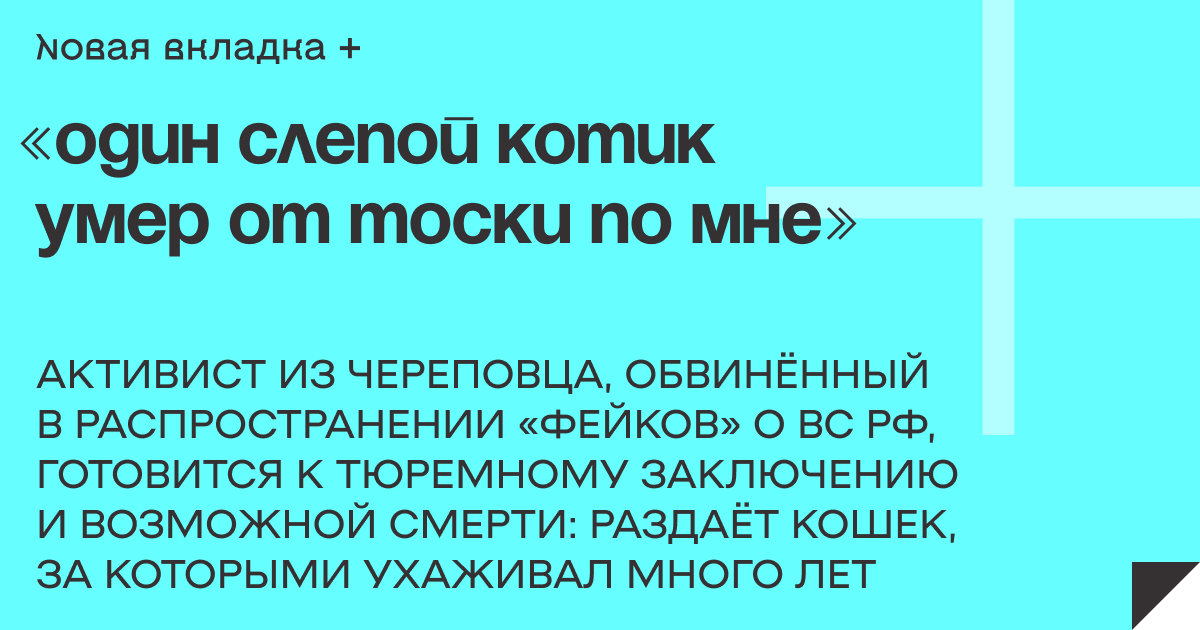 Активист из Череповца Григорий Винтер, обвинённый в распространении «фейков» о ВС РФ, готовится к тюремному заключению и возможной смерти: раздаёт кошек, за которыми ухаживал много лет
