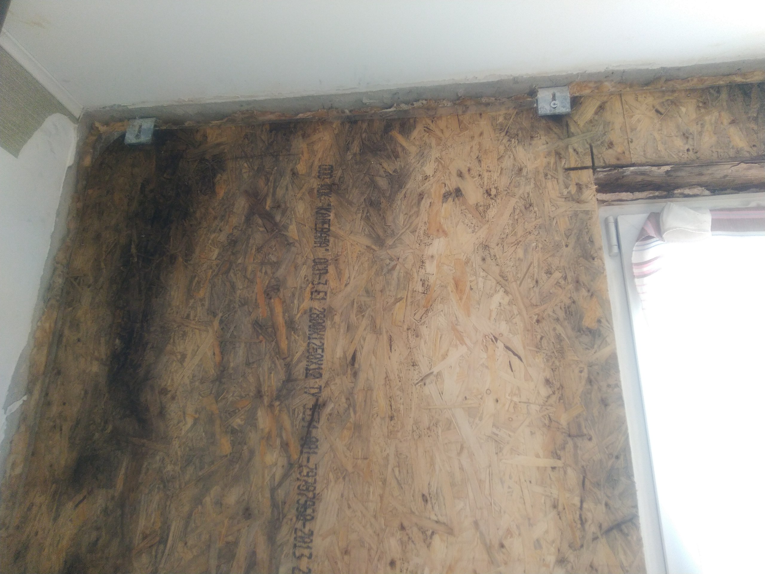 Начав ремонт крыши, рабочие не установили нормального тента, и во время очередного дождя у Александровых залило всю квартиру. Именно тогда они узнали, из чего сделаны фасадные стены в их доме. Под рассыпавшимся в руках мокрым гипсокартоном оказались OSB – деревянные плиты из прессованных и склеенных опилок – как с улицы, так и со стороны квартиры. Крепились они к каркасу из досок.