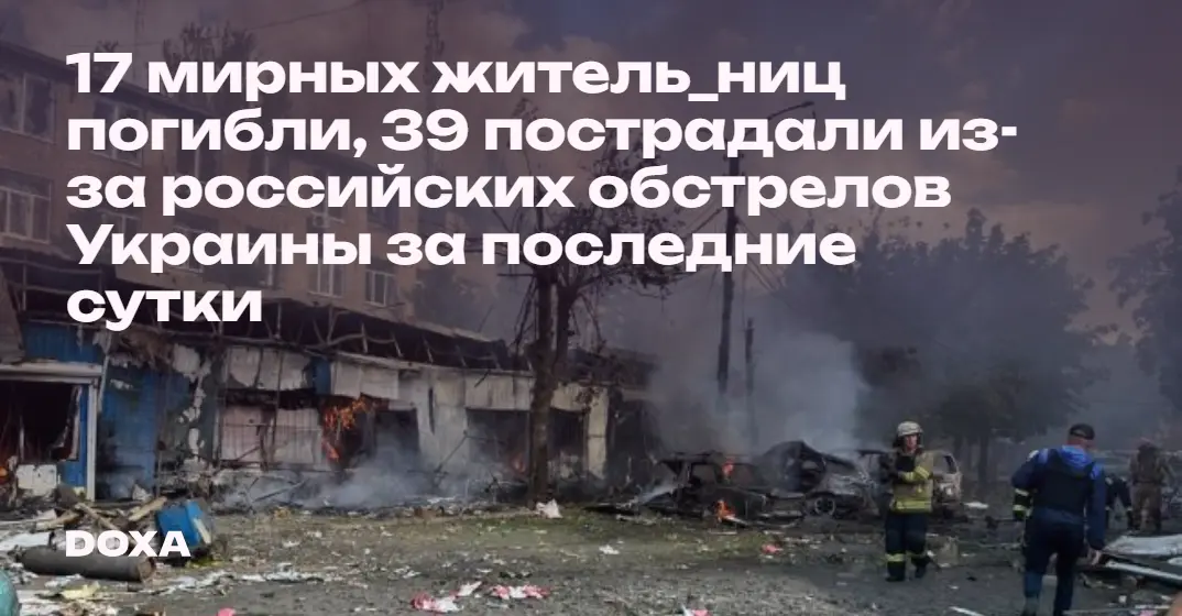 17 мирных житель_ниц погибли, 39 пострадали из-за российских обстрелов Украины за последние сутки