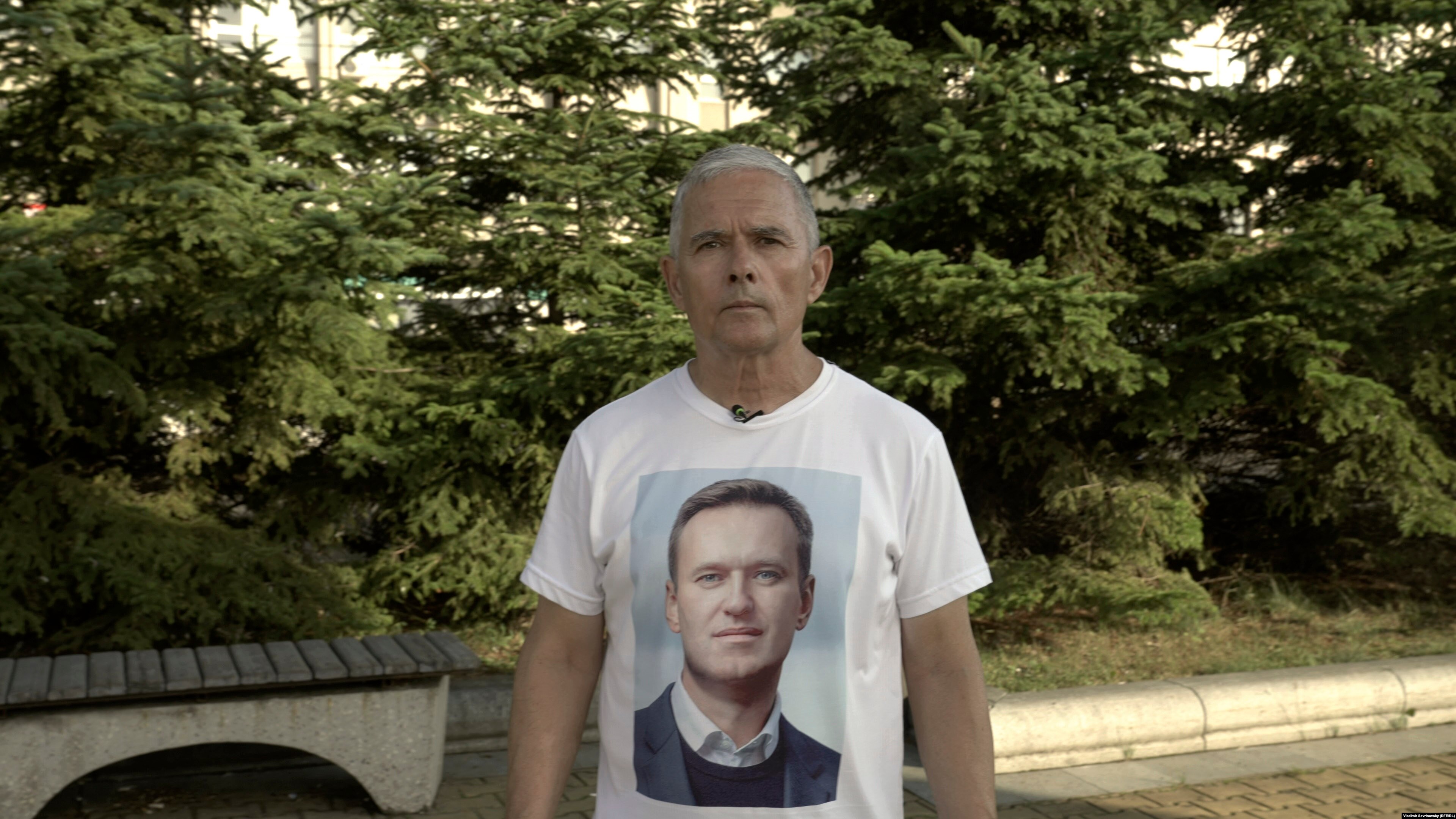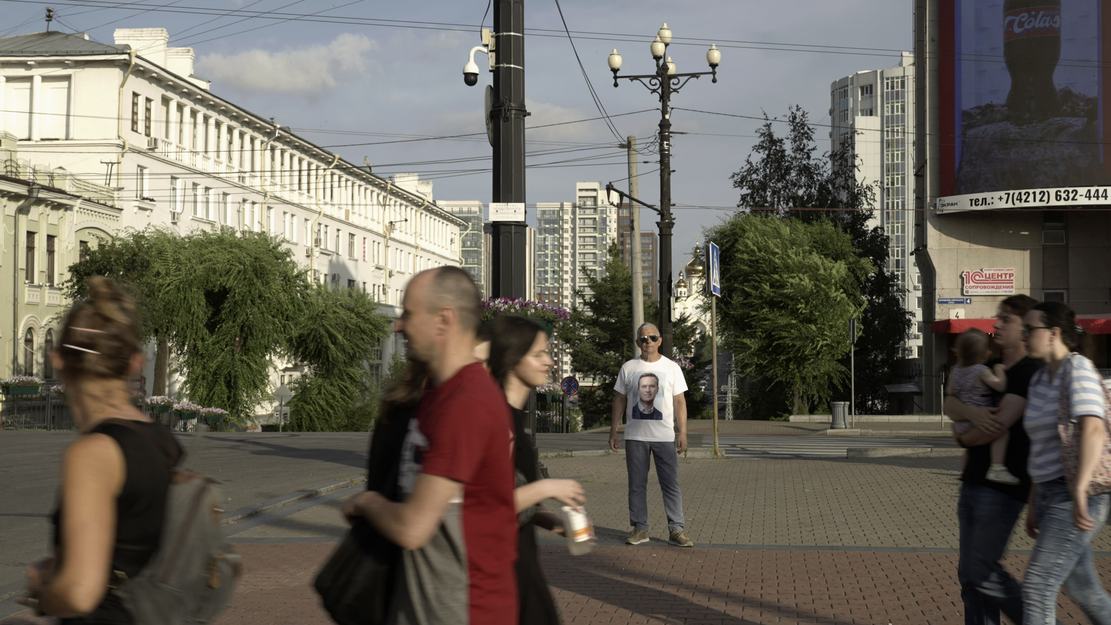 Комсомольская площадь, от которой начинается центральная улица Муравьева-Амурского, – любимое место прогулок хабаровчан. С одной стороны – Градо-Хабаровский собор, с другой – смотровая площадка и набережная Амура. Отдыхающие проходят мимо одиноко стоящего седого человека. На нём – белая майка с портретом улыбающегося Навального. Этого пенсионера, бывшего токаря Зигмунда Худякова, знает весь город.