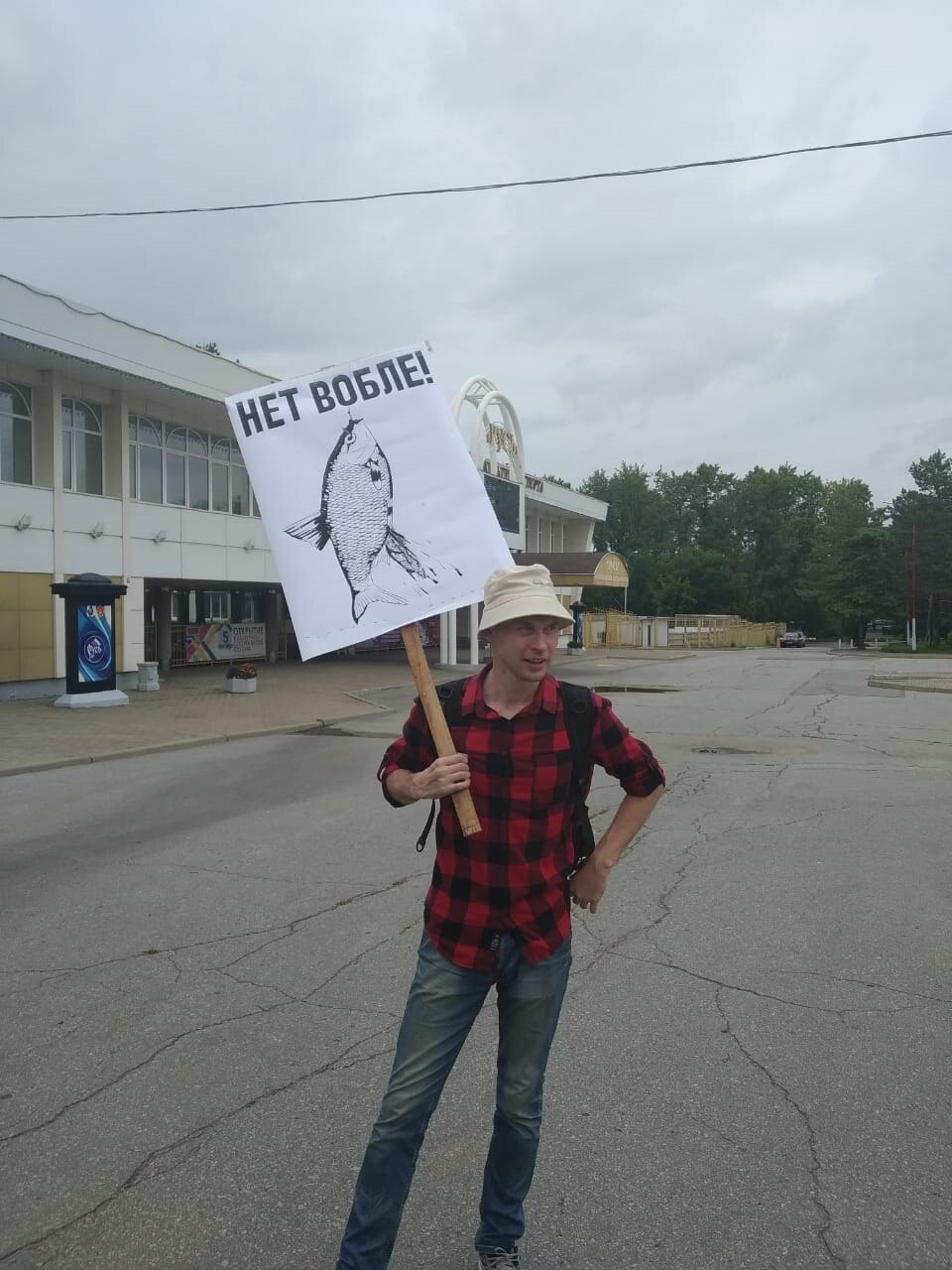 – Я протестую, потому что это большая экологическая проблема, – объясняет он. – Вобла – очень агрессивная рыба. Она изничтожает популяцию своих соседей и способствует алкоголизму, поскольку идет к пиву.