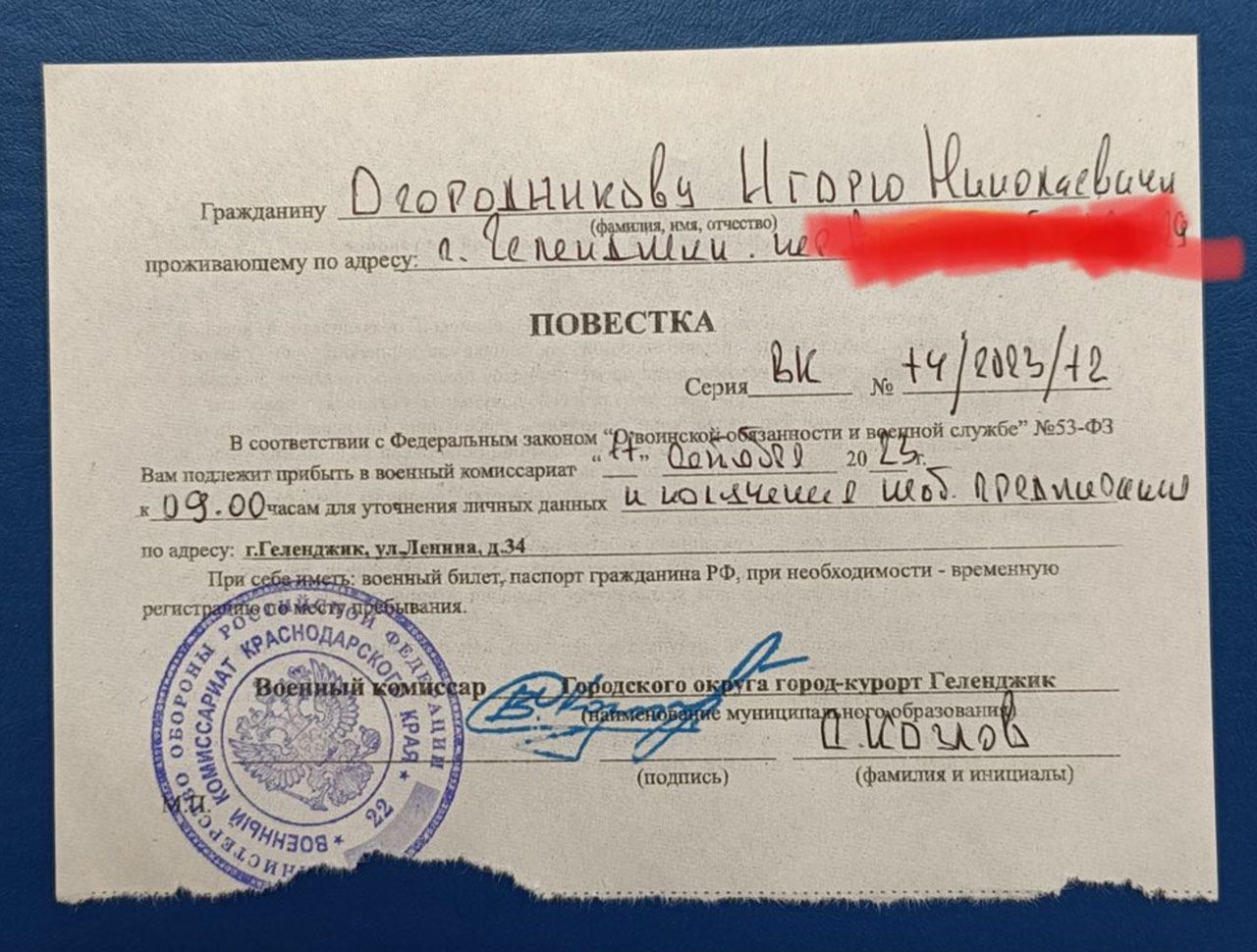 Обновление. В муниципальном центре управления Геленджика сообщили изданию 93.ru, что двум жителям города лично вручили повестки на избирательном участке, поскольку ранее они не пришли в военкомат. «Если бы в пятницу граждане явились в военкомат, никто бы их не отвлекал от работы в комиссии. К слову сказать, такие повестки геленджичанам раздаются ежедневно», — добавил представитель местных властей.