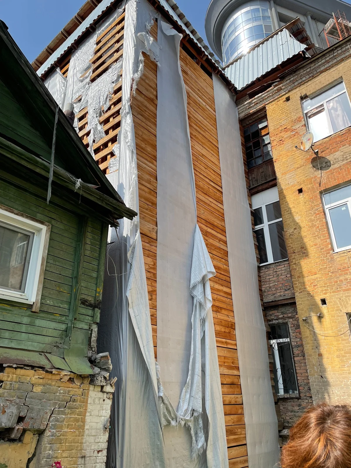 В 2020 году у нас проводили замену коммуникаций и обрушили стену дома. Он подлежал реставрации и восстановлению. Государственными деньгами был оплачен проект. Но потом вышло постановление об изъятии земли под строительство метро. Удачно так все совпало.
