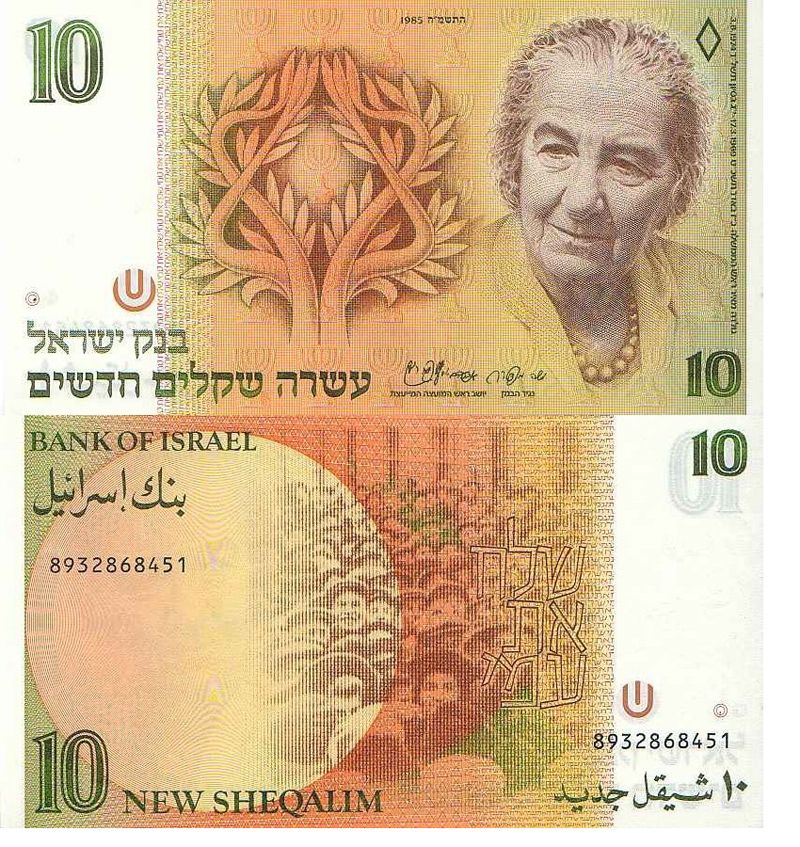 С 1985 по 2000 год одной из самых ходовых купюр в Израиле были 10 шекелей. На аверсе был помещен портрет Голды Меир, а на реверсе — какая-то толпа и надпись «שלח את עמי» («Отпусти народ мой!»). Эта толпа — репродукция фотографии визита Голды Меир, первого посла Израиля в СССР, в Московскую хоральную синагогу на Рош ха-Шану 1948 года. Есть версия (ее высказывала и сама Меир), что именно с этого визита началась антисемитская кампания в СССР: Сталину очень не понравилось, как тепло московские евреи ее приняли.