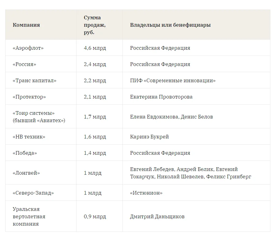 Например, один из основных покупателей — московская компания «Протектор». В 2022 году ее выручка выросла почти в 200 раз — до 4,6 млрд рублей. Как предполагают «Важные истории», большую роль в этом сыграла перепродажа деталей для Boeing и Airbus.