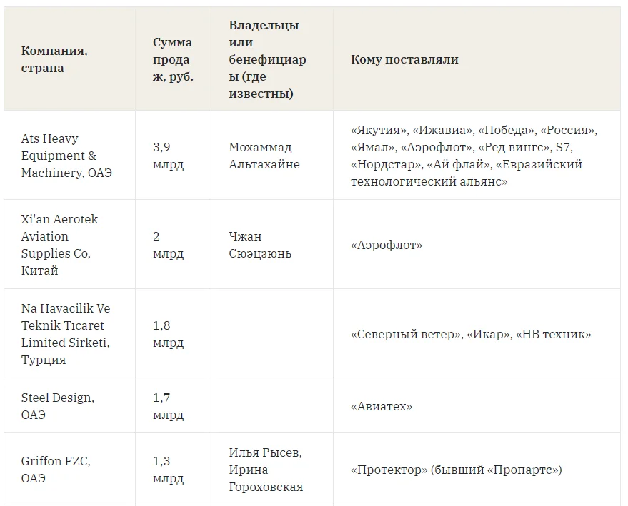 При этом, как отмечают «Важные истории», среди поставщиков есть и компании из Европы. Согласно данным таможенных деклараций, литовская Right Direction Aero продала в Россию запчастей на 145 миллионов рублей.