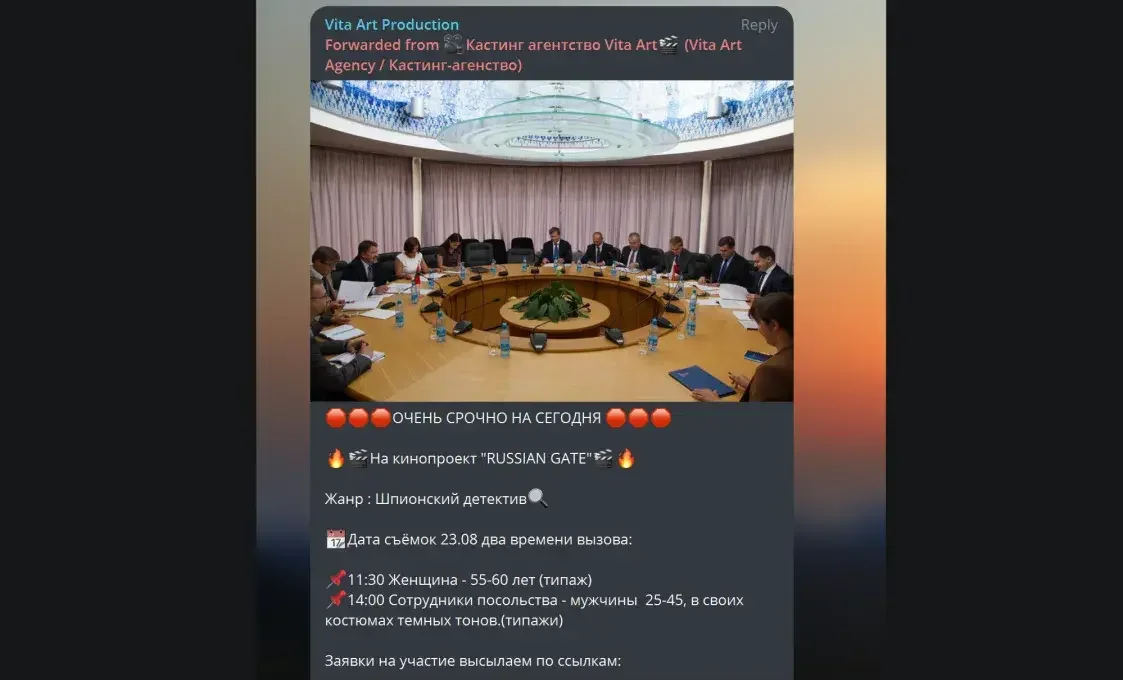 Анализ телеграм-сообществ белорусских кинематографистов выявил, что речь идет о проекте под рабочим названием Russian gate. Его название отсылает к публичным скандалам с политической окраской, вроде американского Уотергейта.