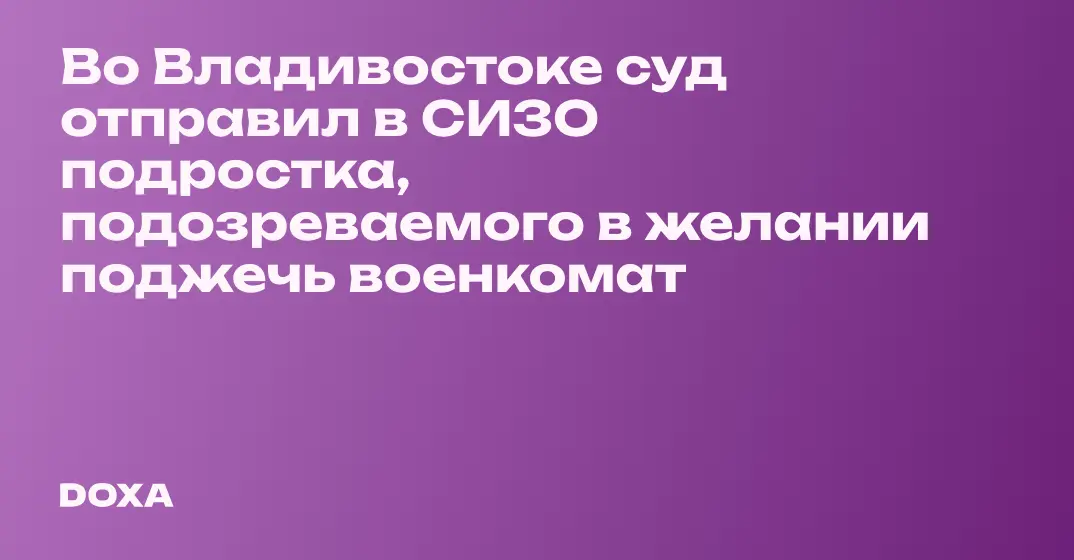 Во Владивостоке суд отправил в СИЗО подростка, подозреваемого в желании поджечь военкомат