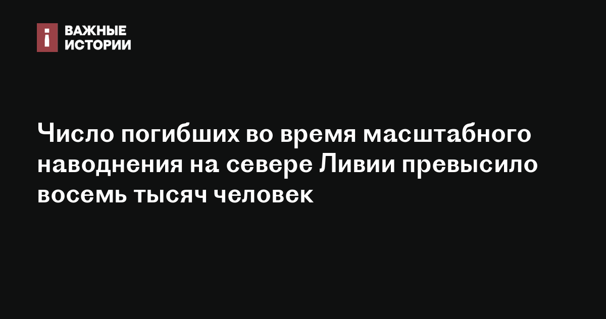 Число погибших во время масштабного наводнения и ливней на севере Ливии превысило 8 тысяч человек, сообщает Al Arabiya.