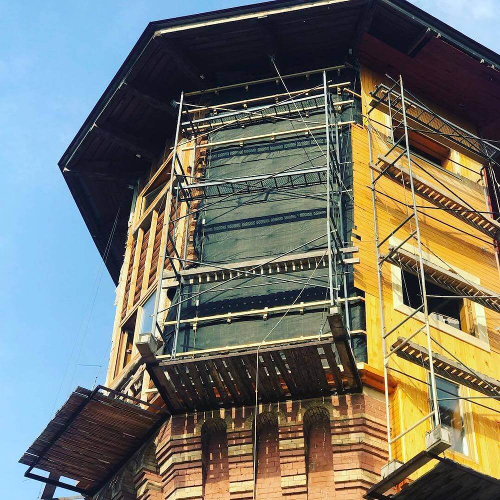 Ограничений по работам внутри башни не было. Лестницы, перекрытия, отверстия в стенах для коммуникаций – все, как нужно Луневу. А вот внешний облик башни, согласно охранному обязательству, Александр обязан сохранять и поддерживать в надлежащем состоянии. Предмет охраны – кирпичная нижняя и деревянная верхняя части башни, расположения оконных проемов, форма крыши, материалы, которые используются для работ.
