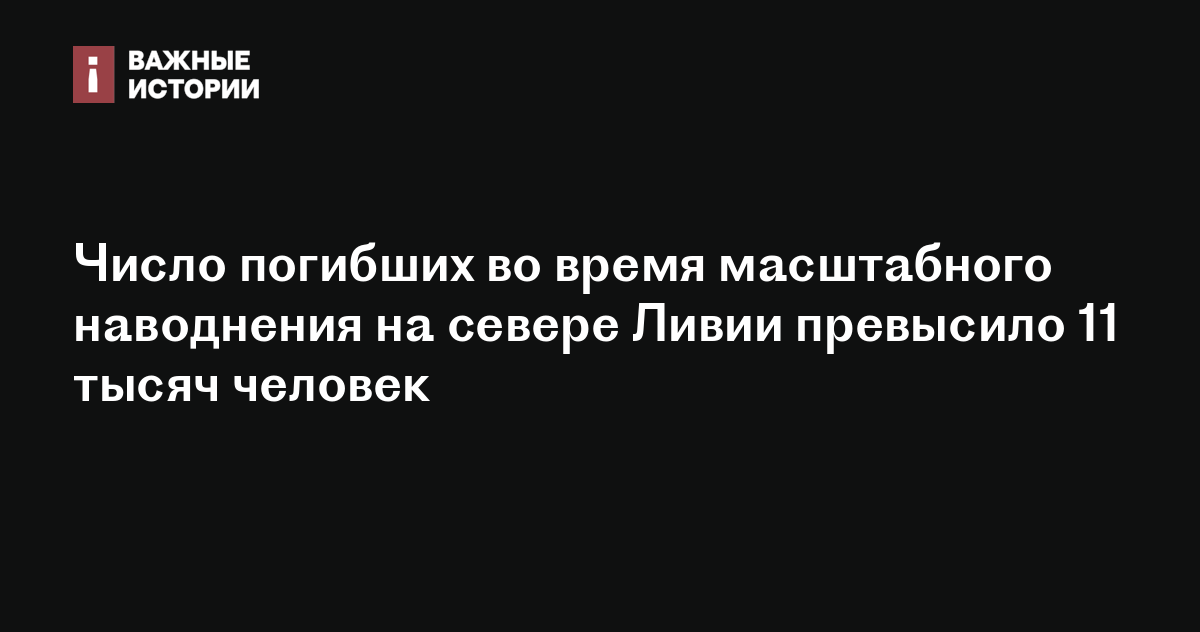 Число погибших во время масштабного наводнения и ливней на севере Ливии превысило 11 тысяч человек, сообщает Al Arabiya.