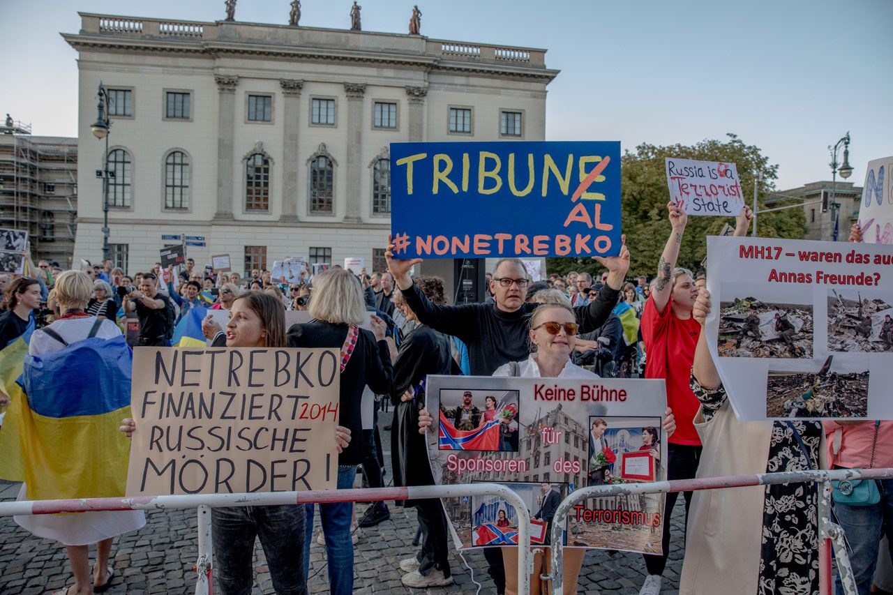 Анна Нетребко собирается трижды выступить в Берлинской опере в сентябре. Протесты против выступлений Нетребко объявила украинская организация «Виче» («Vitsche»). Украинские общественники считают, что Анна Нетребко — «пример политики „мягкой силы“, когда Россия использует культуру для вброса дезинформации и сомнений в европейский дискурс». В Берлинской опере заявили, что Нетребко занимает проукраинскую позицию и заслуживает «второй шанс».
