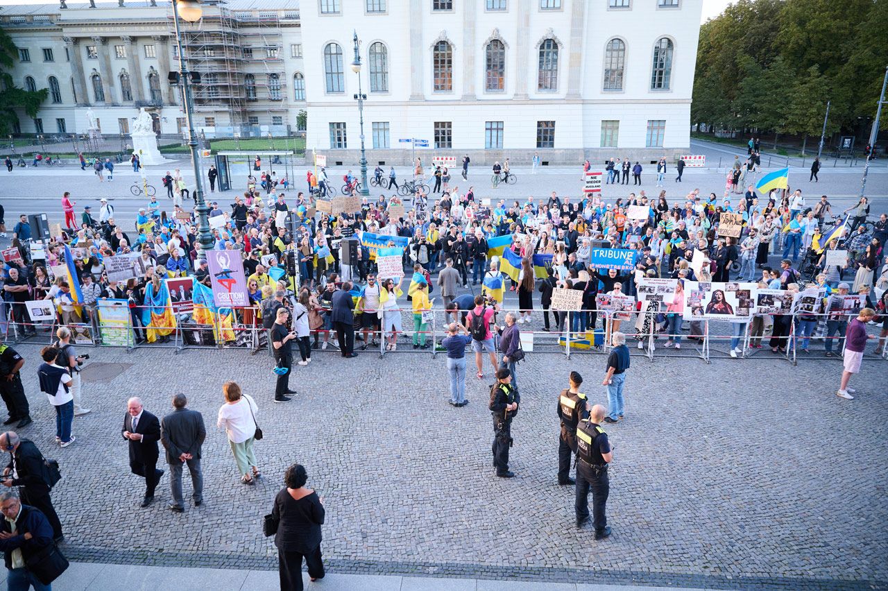 Как отмечают журналисты Deutsche Welle, к протестующим присоединился посол Украины в Германии Алексей Макеев.