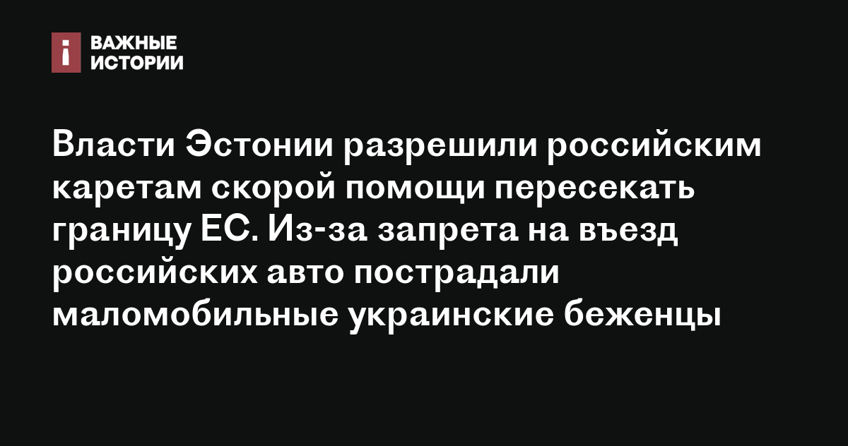 Власти Эстонии разрешили российским каретам скорой помощи пересекать границу ЕС. Из-за запрета на въезд российских авто пострадали маломобильные украинские беженцы