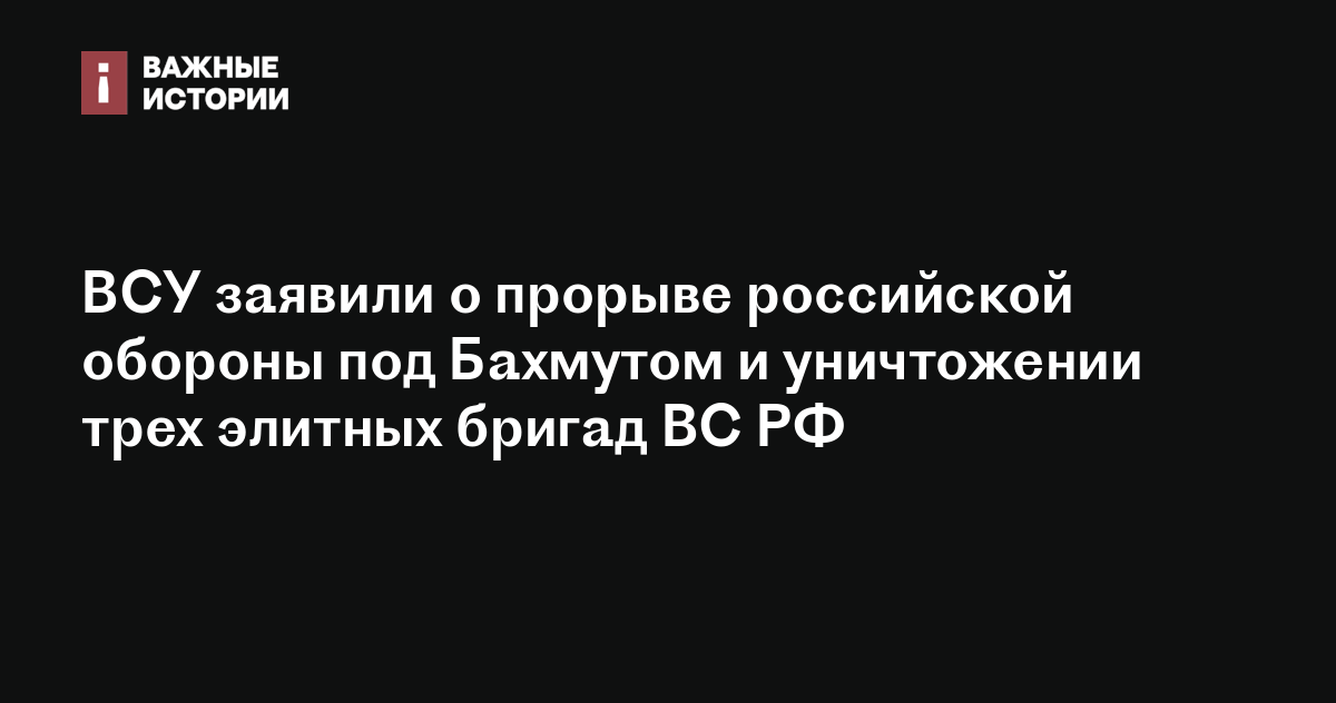 ВСУ заявили о прорыве российской обороны под Бахмутом и уничтожении трех элитных бригад ВС РФ