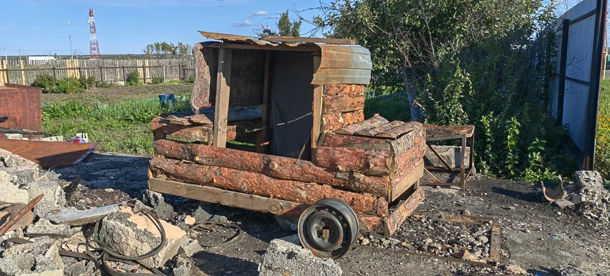 Рядом что-то строят двое загорелых мужчин — и вряд ли можно назвать домом то, что они строят. Конструкция из досок, в народе известных как горбыль, больше напоминает хлев, сарай — что-то крохотное, легкое и нежилое. Однако именно в этом хлеву-сарае Людмиле и предстоит зимовать.