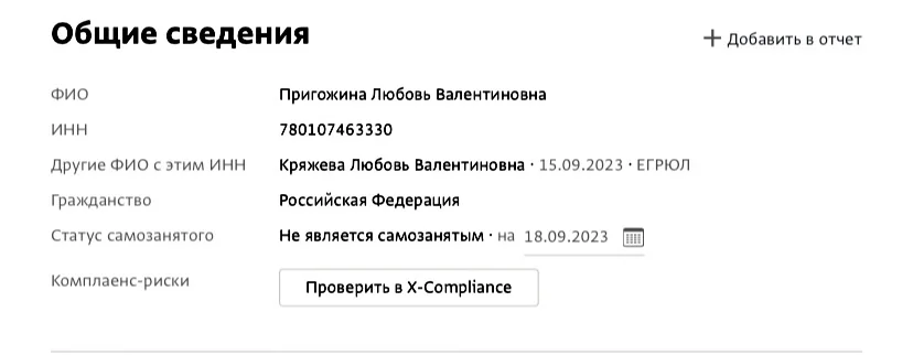 Вдова погибшего основателя ЧВК «Вагнер» Евгения Пригожина 15 сентября вернула девичью фамилию, следует из данных СПАРК. Теперь ее зовут Любовь Кряжева.