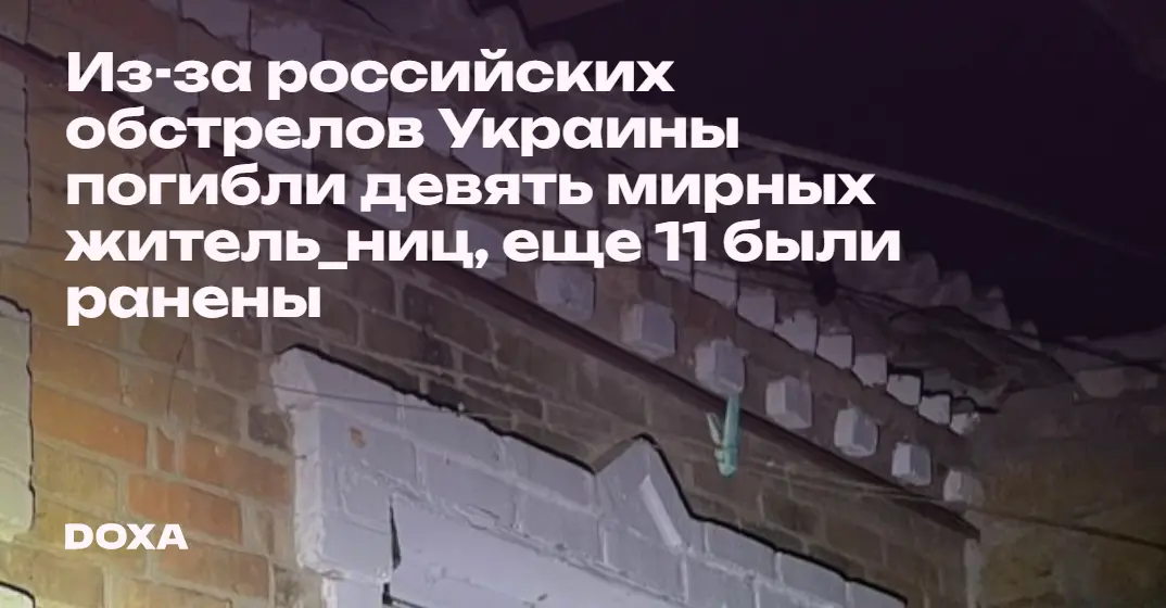Из-за российских обстрелов Украины погибли девять мирных житель_ниц, еще 11 были ранены