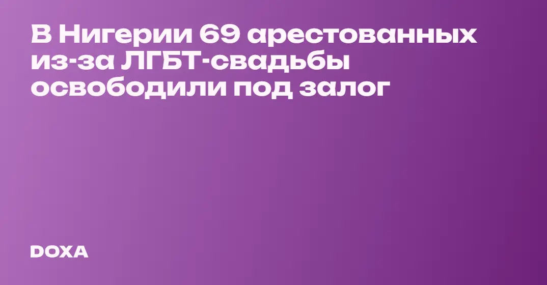 Суд в Нигерии принял решение освободить под залог 69 человек, которых обвинили в участии в однополой свадьбе. Залог составил 500 тысяч найр (645 долларов), сообщил адвокат арестованных Очуко Охимор. Государственные прокурор_ки выступили против этого решения, но суд встал на сторону защиты. Кроме выплаты залога, фигурант_ки дела должны будут раз в месяц являться на проверку в суд.