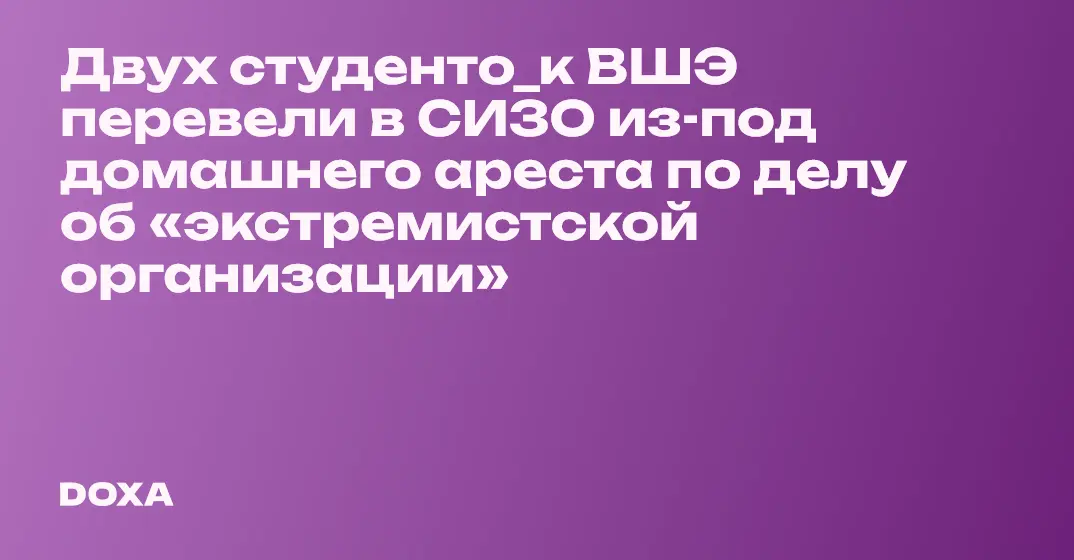 Двух студенто_к ВШЭ перевели в СИЗО из-под домашнего ареста по делу об «экстремистской организации»