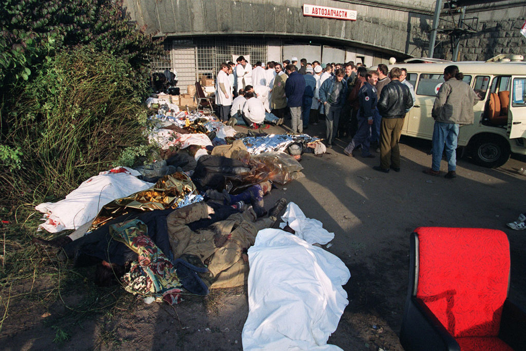 После того как на улицах Москвы закончилась стрельба, газеты опубликовали предварительные списки погибших; в итоге в них оказалось больше 150 человек. Как всегда бывает в таких случаях, параллельно возникли слухи о том, что истинное количество убитых гораздо больше. Газеты, лояльные Верховному Совету, взорвались, вспоминает Трусевич: печатали свидетельства тайных массовых сожжений тел в крематориях, сообщали, что горы трупов вывозили баржами и фурами. Спор о том, сколько людей погибло, стал идеологическим. По словам Трусевич, обе стороны использовали жертв для пропаганды: ельцинские силы поднимали на знамя убитых милиционеров и солдат, сторонники Верховного Совета пытались доказать, что настоящее число погибших замалчивается.