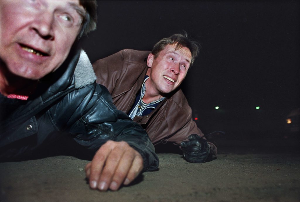 В это время раздался взрыв — и бойцы спецназа, оборонявшие «Останкино», начали поливать толпу огнем из автоматов. Как реагировать на звуки выстрелов, знали только те, кто бывал на войне: как вспоминает Александр Черкасов (сейчас — один из руководителей «Мемориала», а тогда — просто активист-правозащитник), прохожие, стоявшие неподалеку от входа в телецентр, просто «с любопытством смотрели на светлячков» — следы от пуль. «Падает человек. Кричат: “Санитара!” Но люди вокруг не разбегаются, не спасаются, не приседают, — вспоминает Черкасов. — [Все уверены, что] такого не бывает, такое бывает только на картинке».
