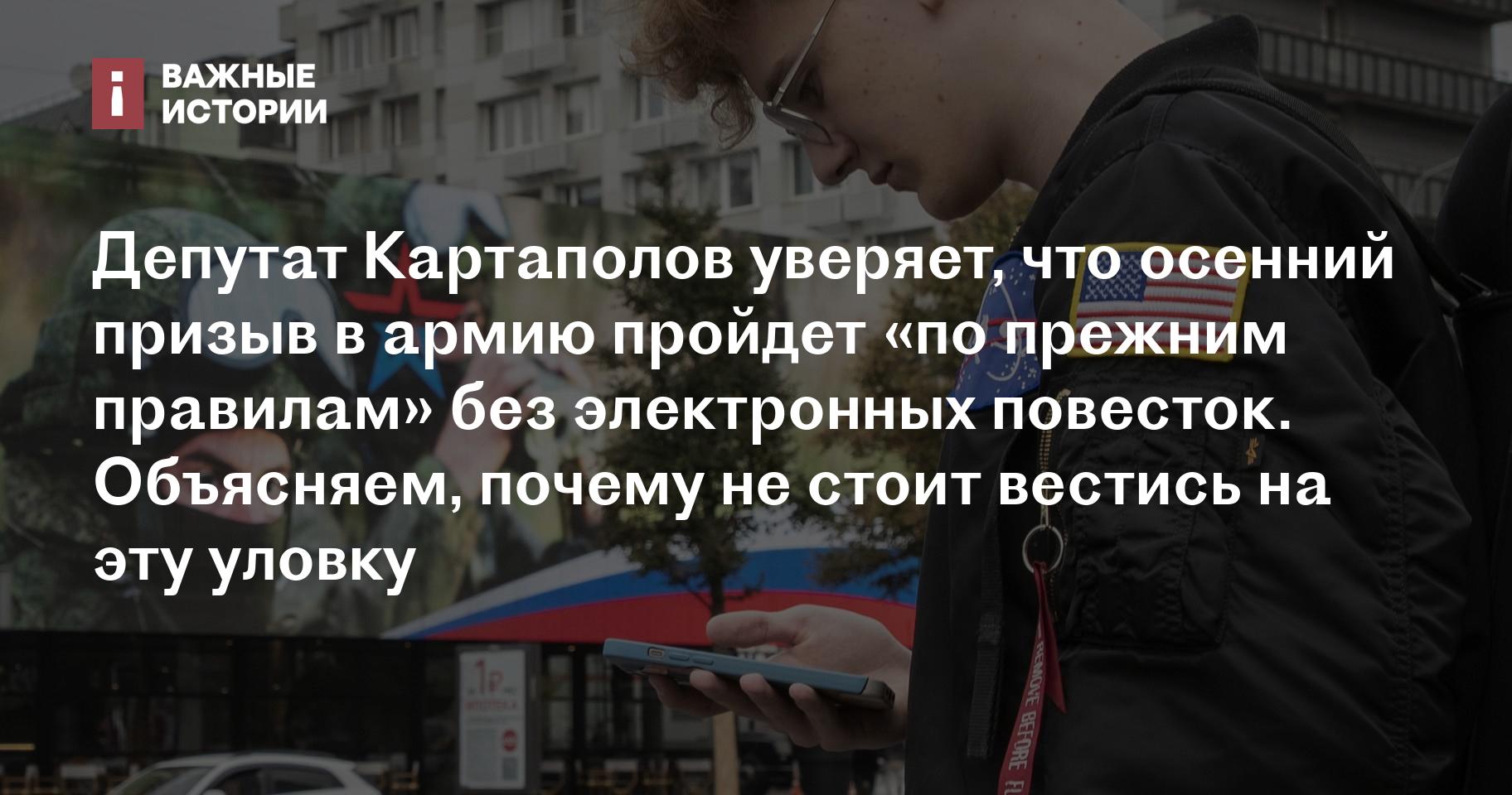 Депутат Картаполов уверяет, что осенний призыв в армию пройдет «по прежним правилам» без электронных повесток. Объясняем, почему не стоит вестись на эту уловку