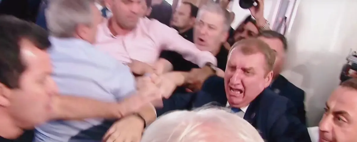 Драку в коридоре никто не объявлял, но атмосфера в парламенте была накалена до предела, нужна была только искра. Когда Ираклий Кобахидзе готовился проводить брифинг, представители оппозиции подошли к нему и стали называть «российским шпионом», «защищающим российских шпионов». Депутаты от «Мечты» бросились в драку, потасовка развернулась прямо перед камерами и микрофонами. Кобахидзе не пострадал: пока он монотонно повторял «сами вы шпионы и агенты», его с флангов прикрыли женщины-депутаты от правящей партии.