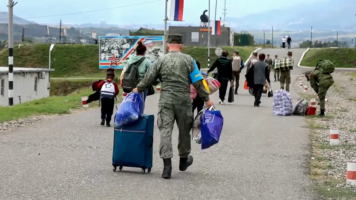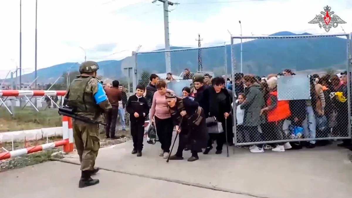 Мирные жители прибывают в лагерь российских миротворцев под Степанакертом, Нагорный Карабах, 21 сентября 2023 года. Фото: Минобороны РФ
