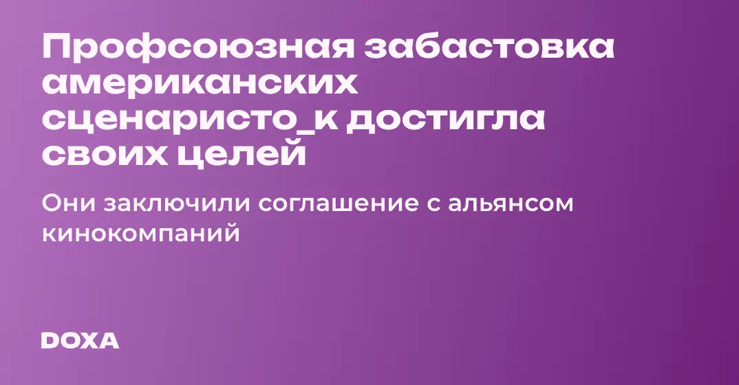 Американский профсоюз сценаристо_к (WGA), бастовавший со 2 мая, объявил о заключении предварительного соглашения с Альянсом продюсеров кино и телевидения (AMPTP), сообщает Variety. Подробности договора пока не раскрываются, но профсоюз в письме своим член_кам назвал уже коллективное соглашение «исключительным» и заверил, что оно обеспечивает интересы работни_ц во всех секторах сценарного производства — выдержки из этого письма опубликовало издание Variety.