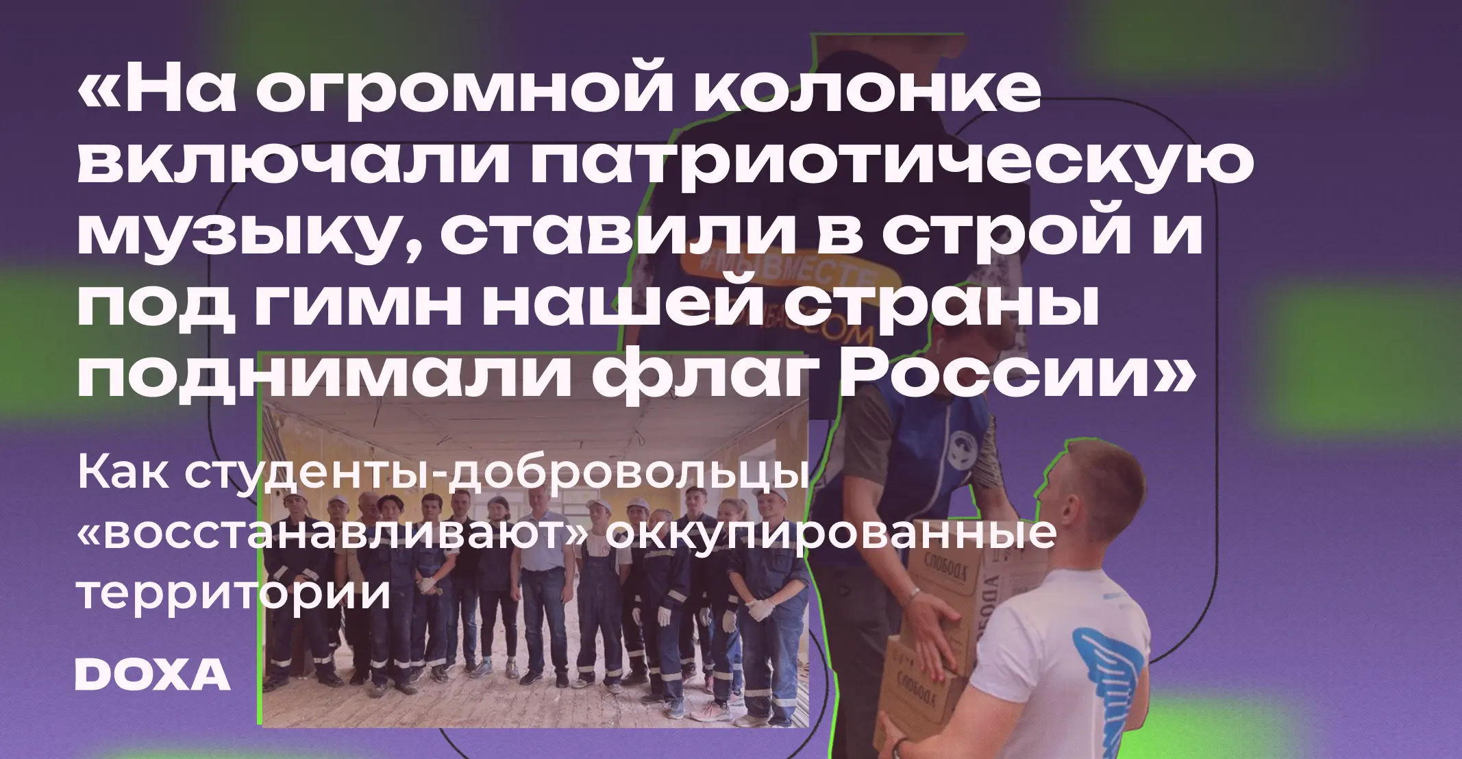 «Мы работаем в арматурном цеху и занимаемся созданием балконных решеток», — рассказывал в начале сентября студент подмосковного технологического вуза, занимавшийся строительными работами в оккупированном Мариуполе. Он — один из участников студенческого отряда «Спутник». Новости о подобных студотрядах, «восстанавливающих Донбасс», можно найти практически в любом региональном российском СМИ. Мы решили отыскать подобных студенто_к и спросить у них, зачем они едут на оккупированные территории и что там делают.