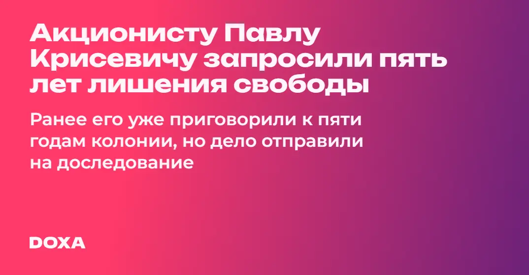 Акционисту Павлу Крисевичу запросили пять лет лишения свободы