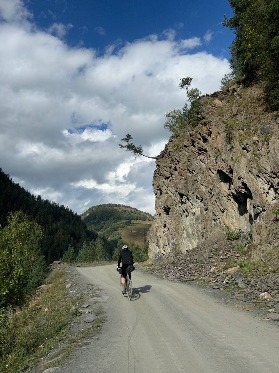 У нас всё пошло не по плану с самого начала. В первый день мы должны были проехать 120 километров. В итоге проехали десять: у меня «вышло из чата» заднее колесо. Мы вернулись в Salty (веломастерская с кофейней в Сабуртало — прим. Paper Kartuli), где мне поставили новые, совершенно другие колеса. В итоге мы проехали эти 120 километров на трансфере, потому что время поджимало.