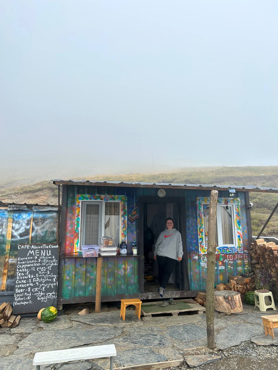 Нас спасла Даджи — девушка-тушетинка, которая прямо на перевале открыла кафе Above the clouds. Мы обнаружили это заведение в 10 вечера, постучались, зашли и увидели, что там стоят кровать и печка. Когда пришла Даджи, она разозлилась, что мы зашли без спроса, но потом мы объяснили, что очень замерзли и хотели проверить, есть ли кто внутри.