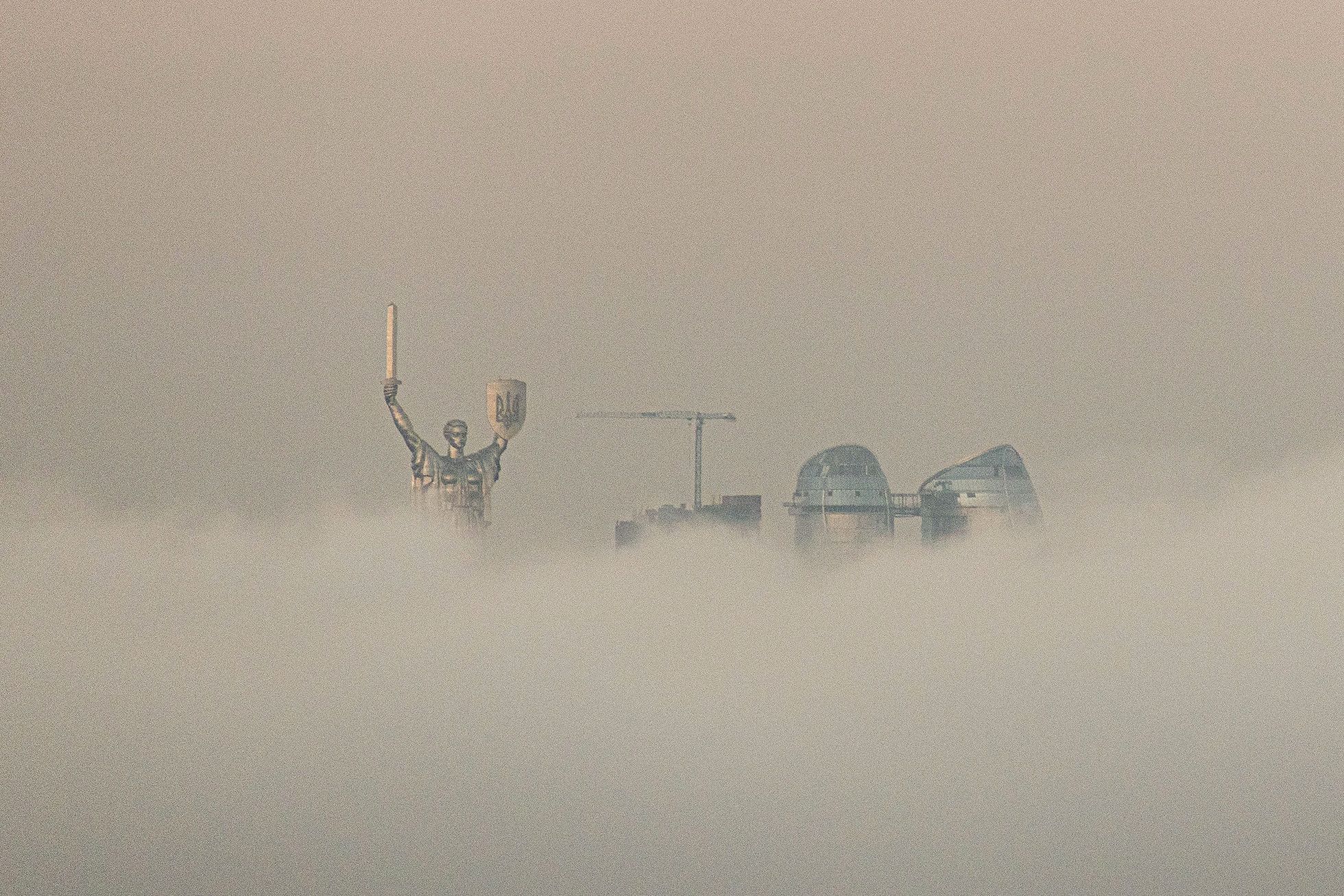 Монумент «Родина-мать», скрытый за утренним туманом в Киеве