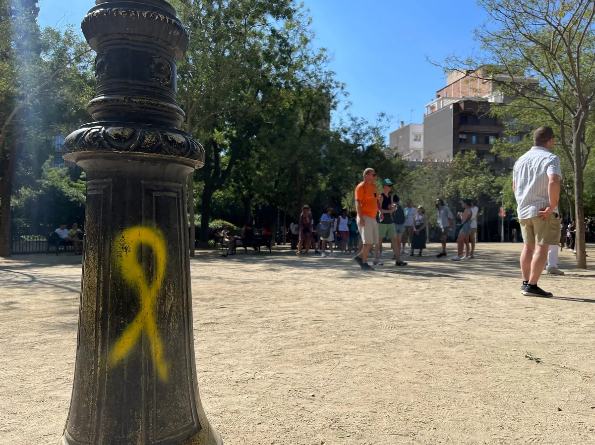 Несмотря на то, что в преддверии Диады центр Барселоны пестрит эстеладами, всего лишь месяц назад найти их в городе было не так просто. Еще реже на улице встречались изображения желтых лент, с помощью которых каталонцы выражают поддержку политзаключенным — лидерам оппозиции, которые оказались в тюрьме после проведения референдума 2017 года. После оглашения приговоров ленты начали рисовать на стенах и столбах, вывешивать на здания в виде отдельных фигур. Они встречаются и сейчас, но некоторые по прошествии времени кажутся уже совсем блеклыми.