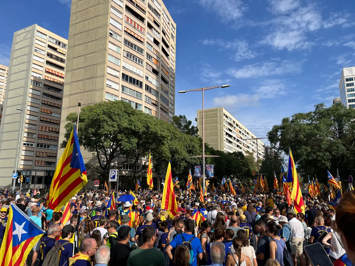 На привокзальной площади становится ясно, что собралось огромное количество людей: места, где заканчивается поток флагов, просто не видно. По данным сепаратистов, сегодня на улицы вышли 800 тысяч человек. Это число, конечно, серьезно завышено, но, даже по информации полиции, количество протестующих превысило 100 тысяч. Для сравнения, недавний митинг «юнионистов», на который в конце сентября в Мадрид съехались противники независимой Каталонии со всей страны, собрал 40 тысяч человек.