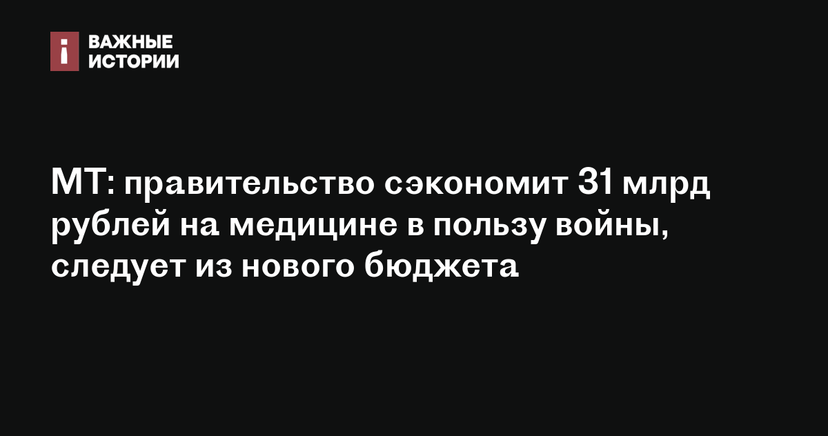 MT: правительство сэкономит 31 млрд рублей на медицине в пользу войны, следует из нового бюджета