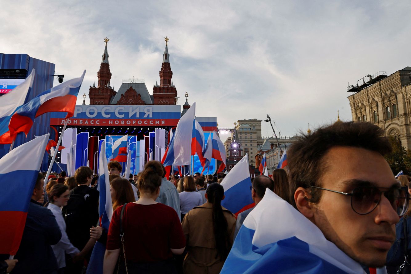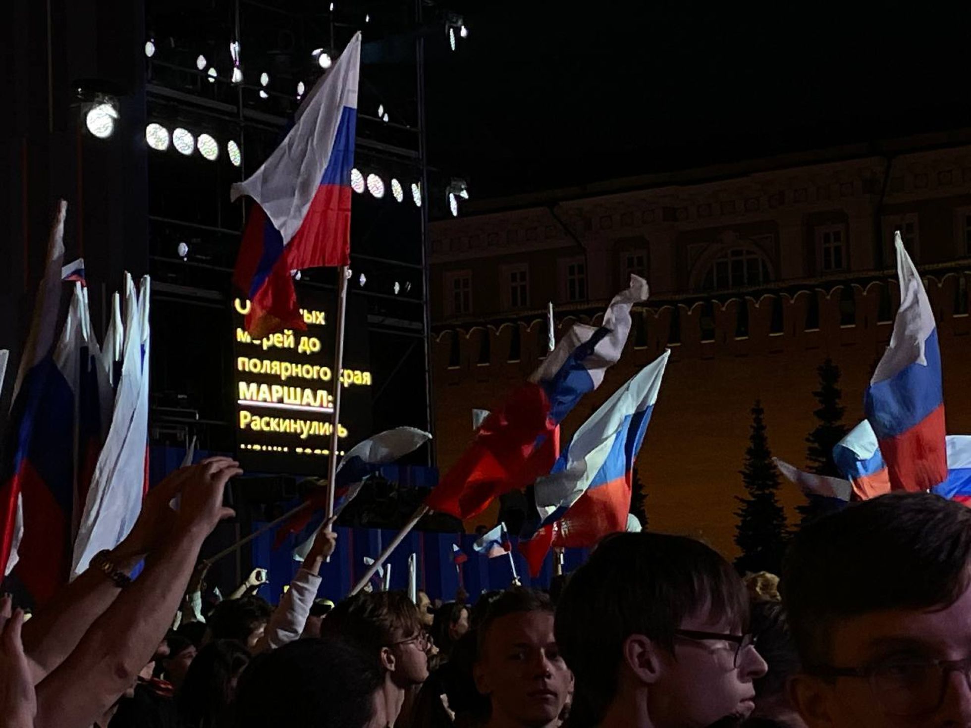 В пятницу, 29 сентября, на Красной площади провели митинг-концерт под лозунгом «Одна страна, одна семья, одна Россия». Он был приурочен к годовщине аннексии Россией четырех украинских регионов: Донецкой, Луганской, Запорожской и Херсонской областей (хотя ни один из аннексированных украинских регионов Москва не контролирует полностью). Президент РФ Владимир Путин, который раньше выступал на всех больших митингах-концертах, в этот раз не приехал. Федеральные телеканалы тоже проигнорировали трансляцию. Корреспондент кооператива независимых журналистов «Берег» сходил на Красную площадь и рассказывает о том, как студенты и бюджетники пришли потанцевать под Полину Гагарину — но получили басни Z-поэтов, националистические песни и речи о патриотизме. С разрешения «Берега» «Медуза» публикует этот текст целиком.