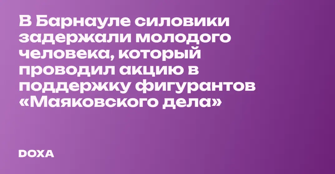 В Барнауле силовики задержали молодого человека, который проводил акцию в поддержку фигурантов «Маяковского дела»