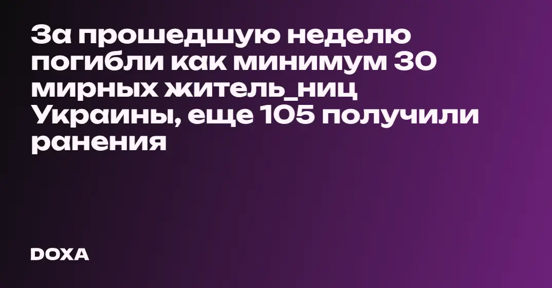 За прошедшую неделю погибли как минимум 30 мирных житель_ниц Украины, еще 105 получили ранения