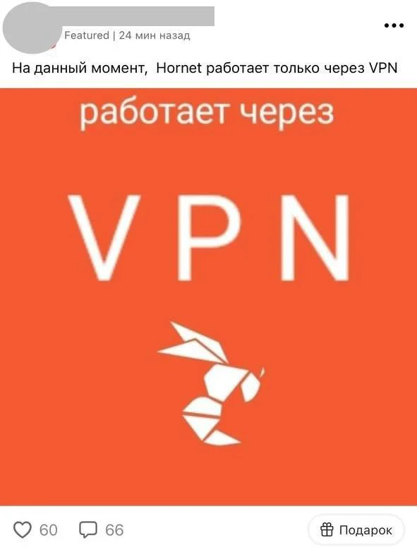 Посты с информацией о том, что Hornet перестал открываться без VPN, появились в самом приложении.