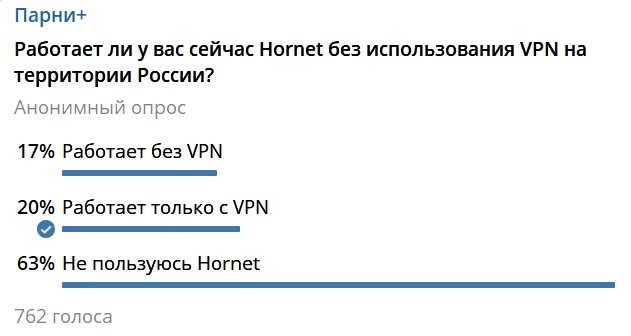 В сентябре стало известно, что hornet.com не открывается в РФ без VPN. Однако приложение работало исправно.