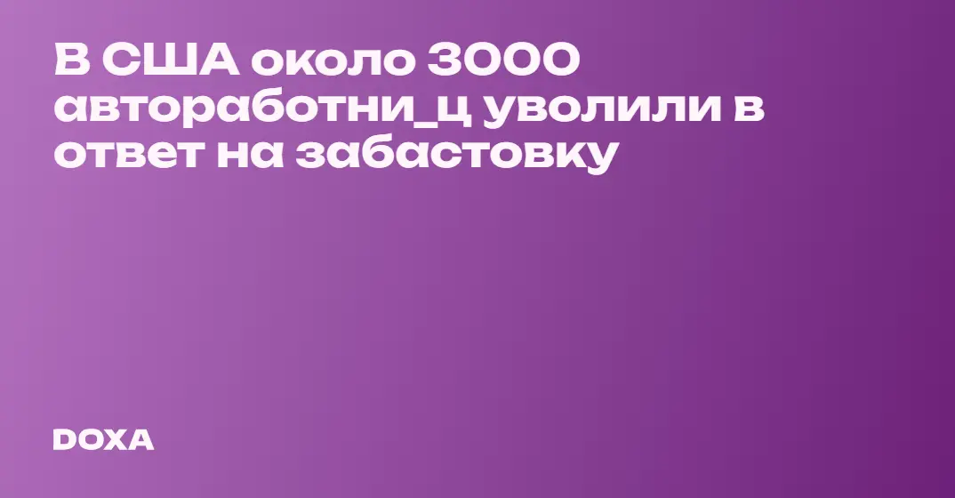Три крупнейшие в США автомобилестроительные компании — General Motors, Ford Motor и Stellantis — уволили более трех тысяч работни_ц в ответ на забастовку. Она продолжается с 15 сентября, когда 12700 работни_ц-члено_к профсоюза «Объединенных автомобильных рабочих» отказались выходить на работу из-за несправедливых оплаты труда и условий работы. С начала забастовки количество протестующих работни_ц увеличилось до 25 тысяч работни_ц, занятых на 38 предприятиях в 20 штатах.