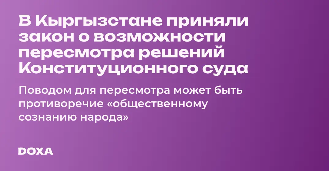 Изменения в закон о КС предусматривают, что президент_ка или председатель_ница КС могут инициировать пересмотр решений, если изменятся нормы Конституции, появятся новые существенные обстоятельства или если решение противоречит «моральным и нравственным ценностям, общественному сознанию народа Кыргызской Республики».
