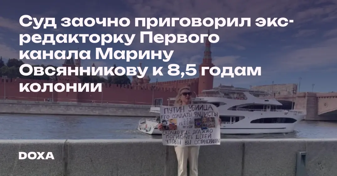 Суд заочно приговорил экс-редакторку Первого канала Марину Овсянникову к 8,5 годам колонии