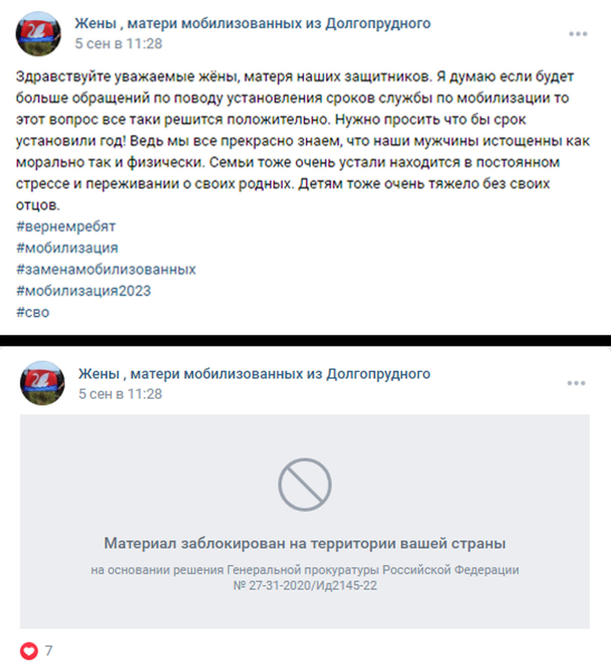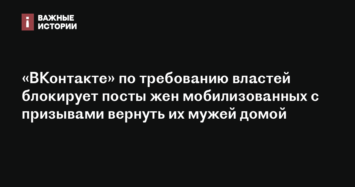 «ВКонтакте» по требованию властей блокирует посты жен мобилизованных с призывами вернуть их мужей домой
