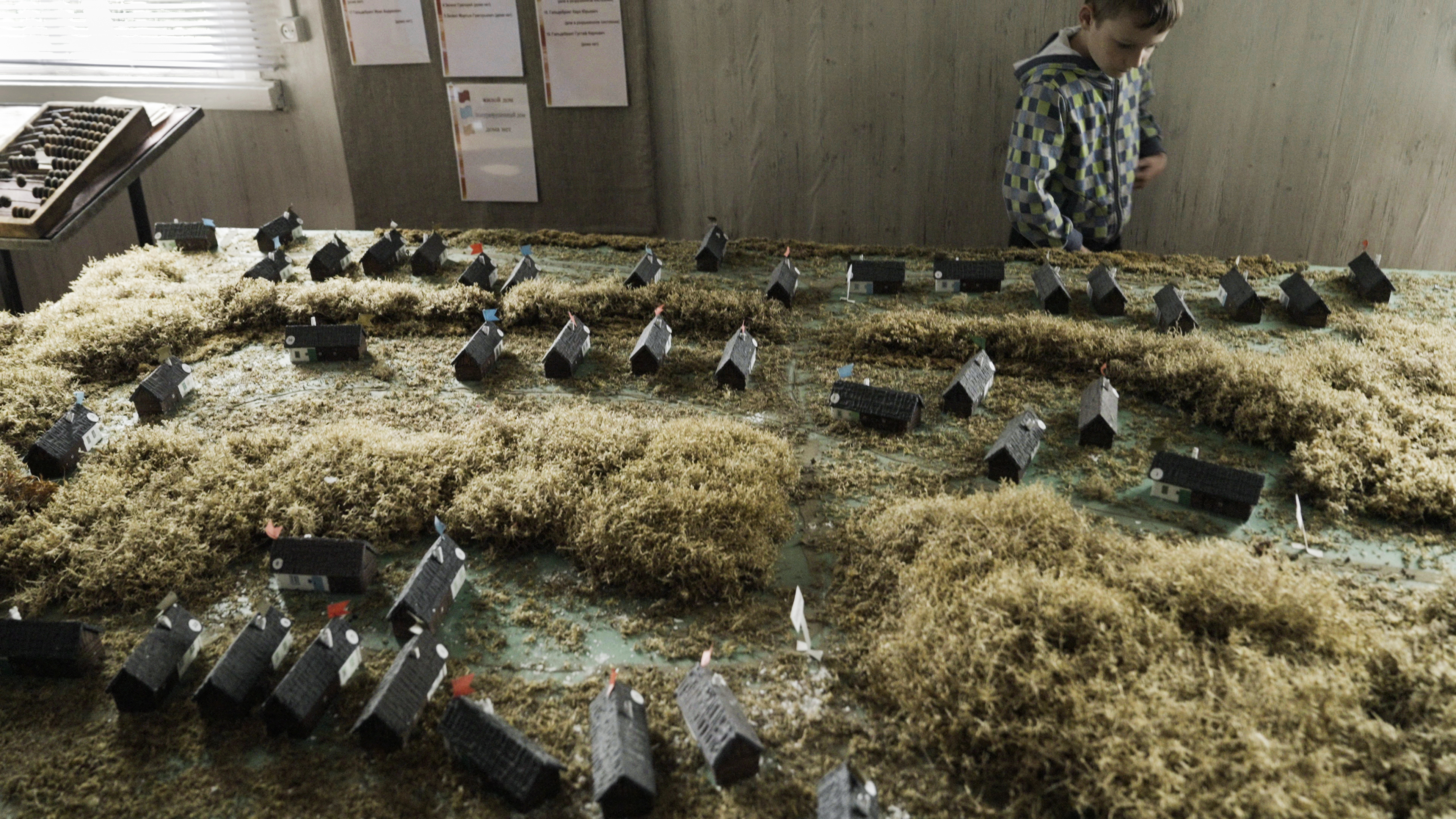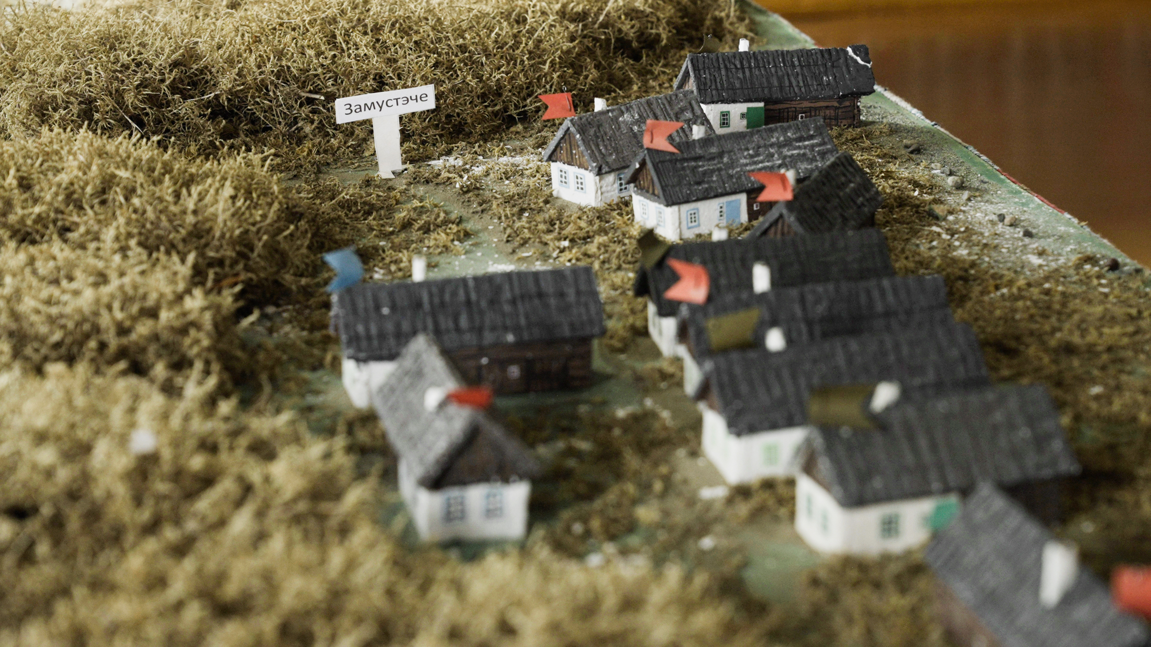 Перед Ниной большой детальный макет: деревенские дома по обе стороны нарисованной реки. Пучки засохшего мха изображают деревья. К каждому дому прикреплен флажок. Если он красный, дом еще жилой, или, по крайней мере, был таким в 2012 году, когда макет создавался. Синий флажок – дом опустел. Желтый – его больше нет. Среди скоплений крошечных изб – таблички со странными, нездешними названиями. В деревне Тулусине остались лишь желтые флажки, а в Замустэче, Новынах и Дагнике до сих пор живут выходцы из Западной Европы. Их трудный путь в Сибирь длился не одну сотню лет. Его они начали в поисках своей земли, религиозной свободы, а главное – мира.