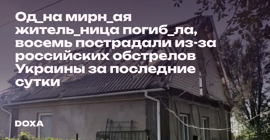 Од_на мирн_ая житель_ница погиб_ла, восемь пострадали из-за российских обстрелов Украины за последние сутки