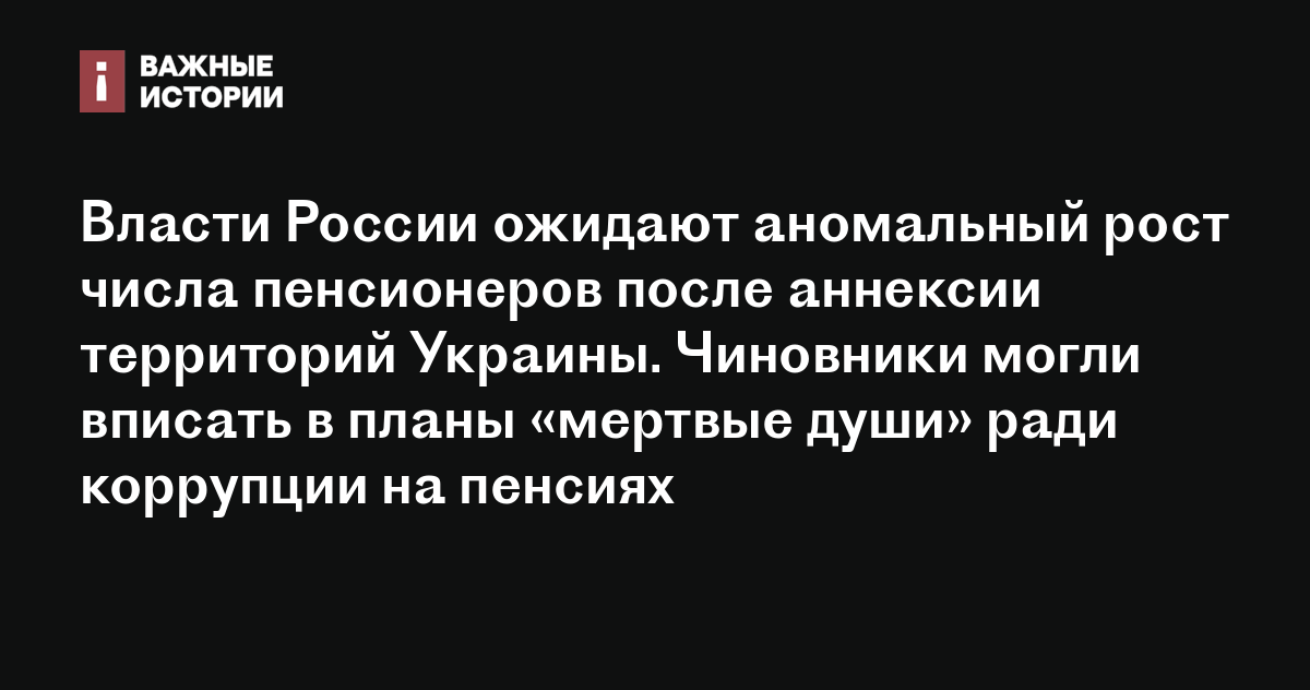 Власти России ожидают аномальный рост числа пенсионеров после аннексии территорий Украины. Чиновники могли вписать в планы «мертвые души» ради коррупции на пенсиях